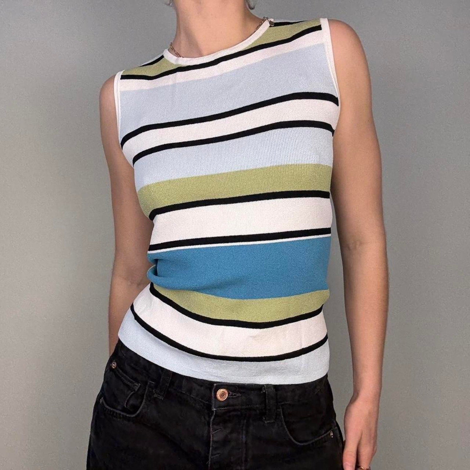 Green blue high neck striped sleeveless fitted sweater top - size small - from Geoffrey Beene Sport