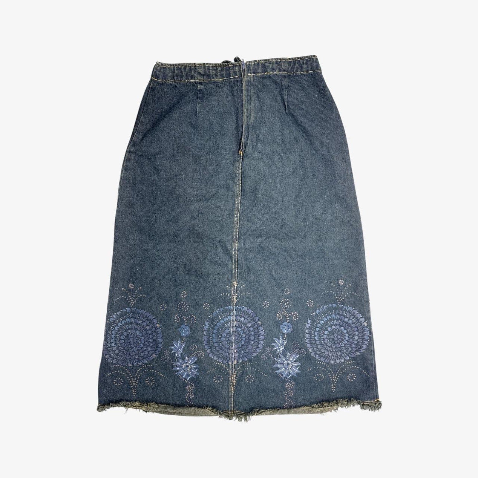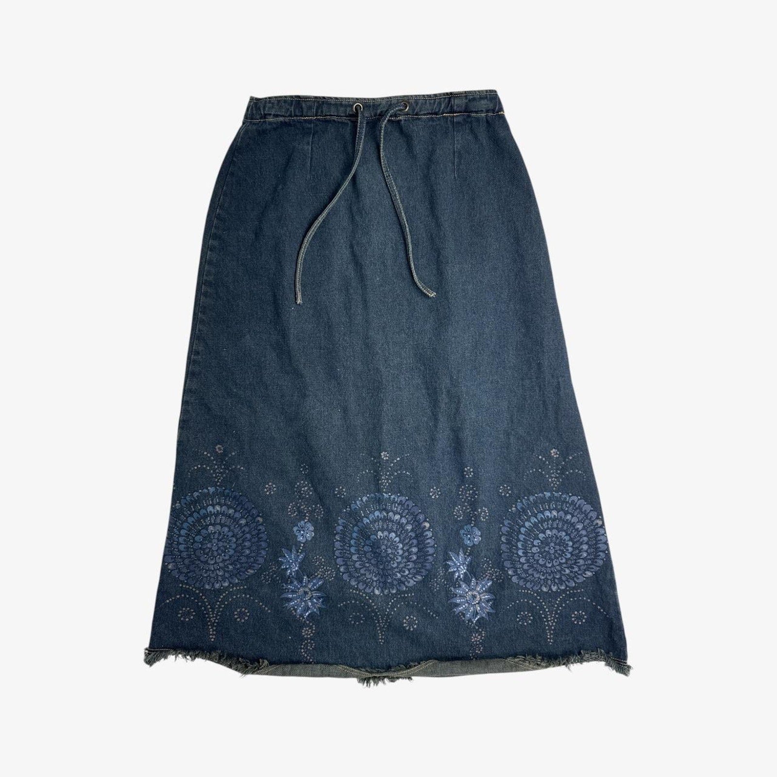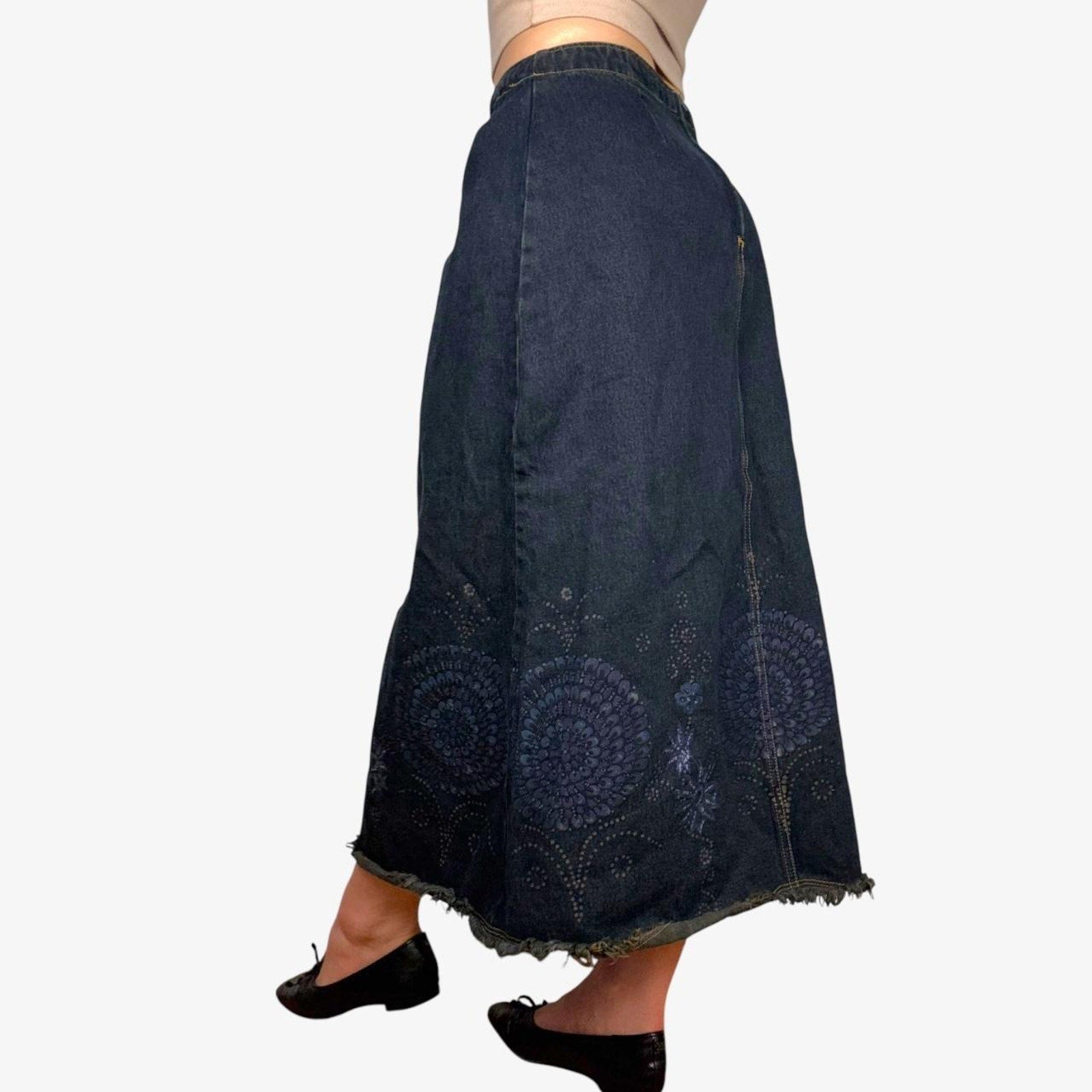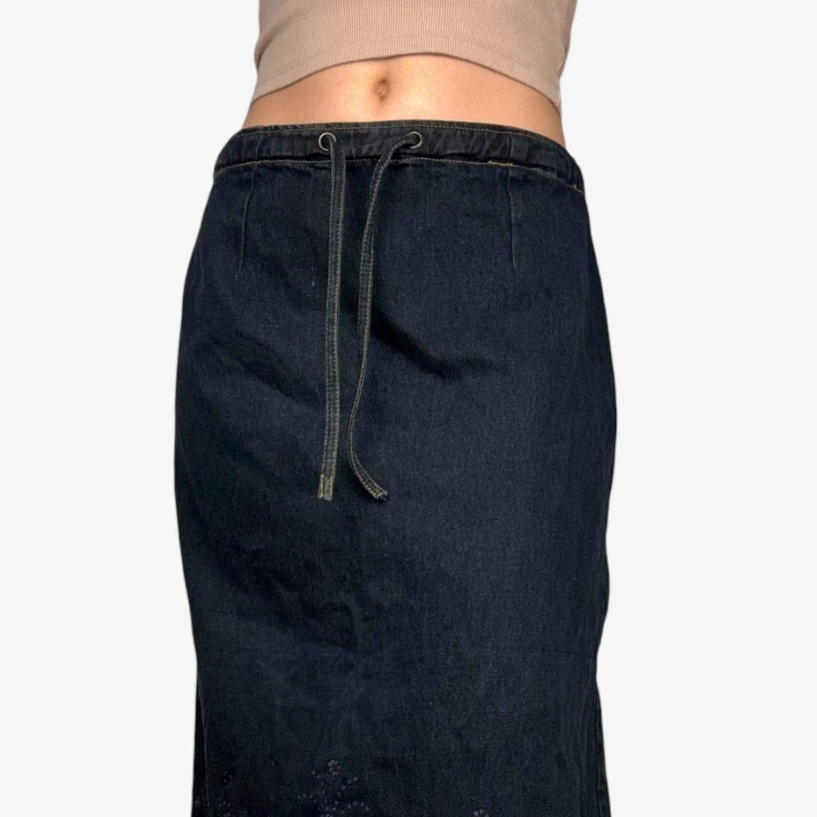 Denim midi skirt y2k floral printed drawstring - size S from Harvé Benard